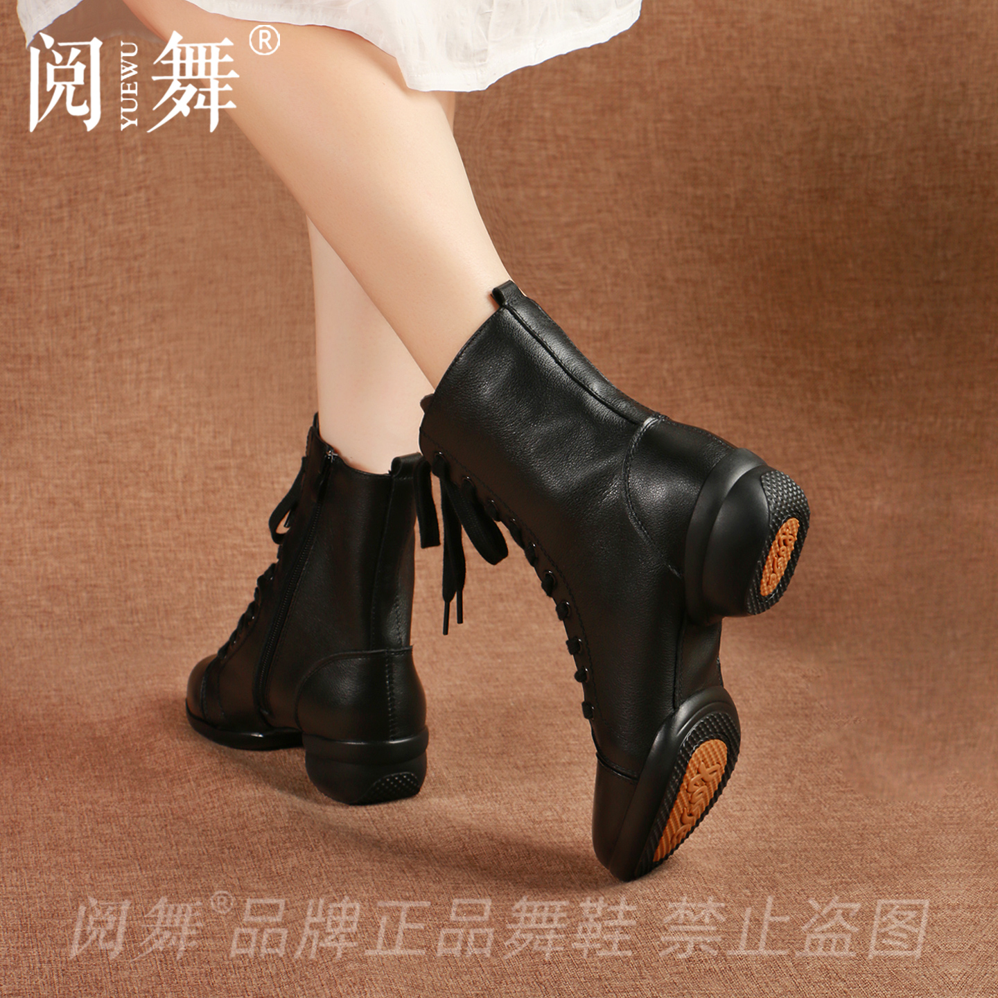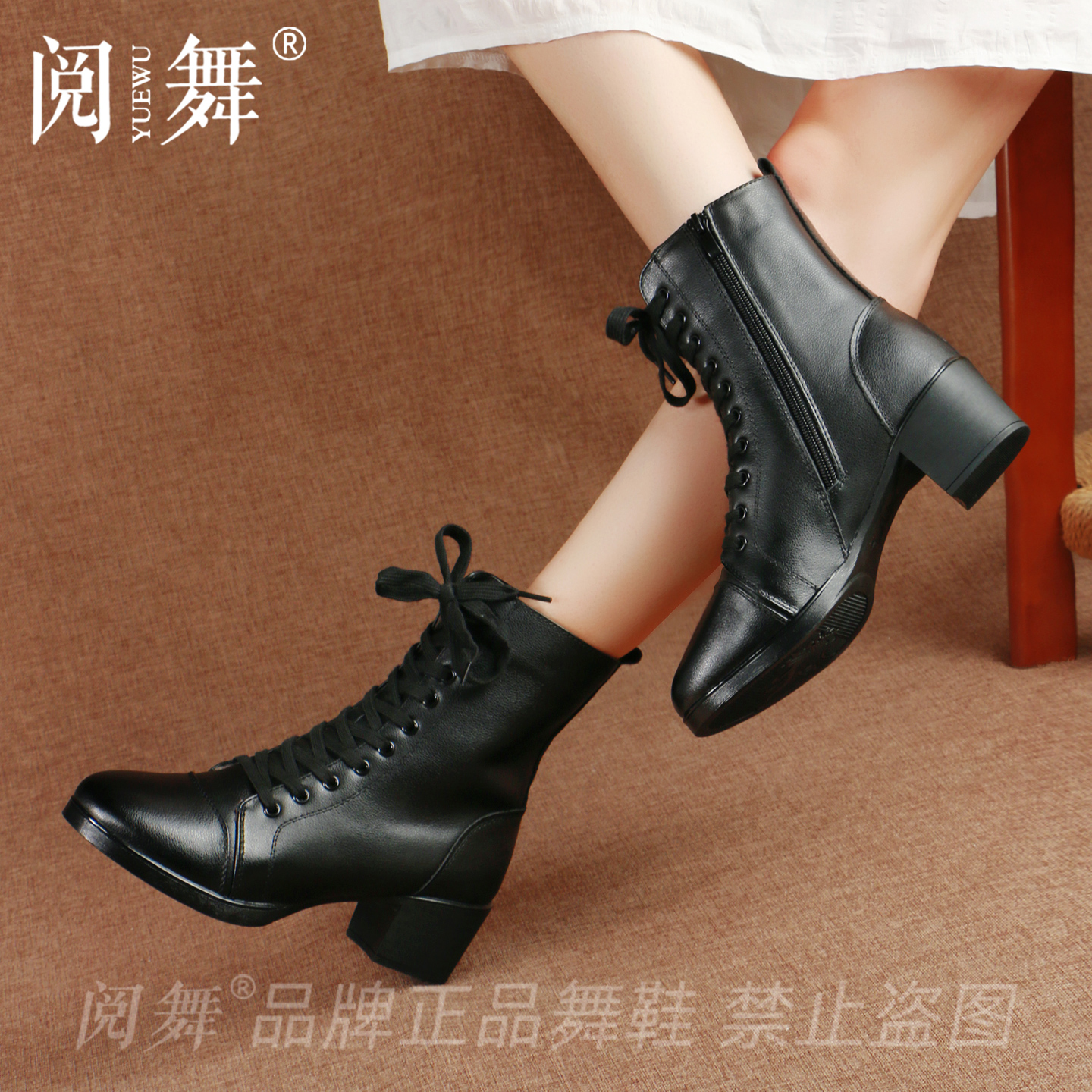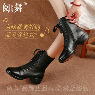真皮软底成人中跟水兵舞跳舞靴 全牛皮女士舞蹈鞋 阅舞新款 广场舞鞋