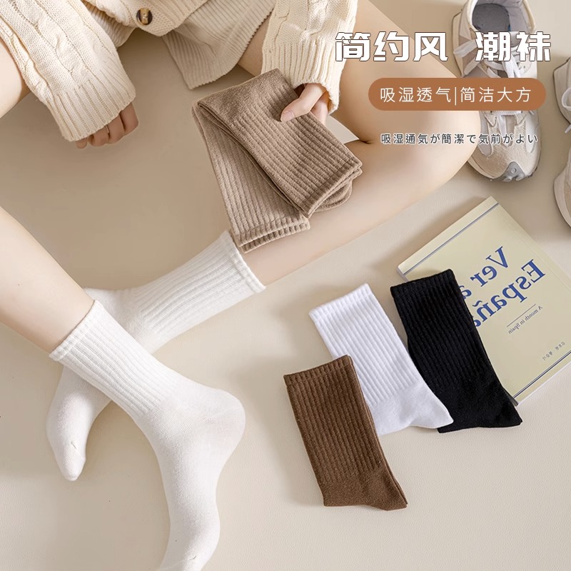 小腿袜子女春秋季 JK潮 过膝袜纯棉中筒袜微压显瘦无骨长筒长袜夏季