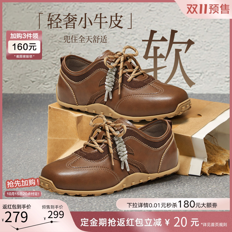 女阿甘鞋 运动鞋 D3590CM5Z 真皮德训鞋 双11预售百思图2025秋新款