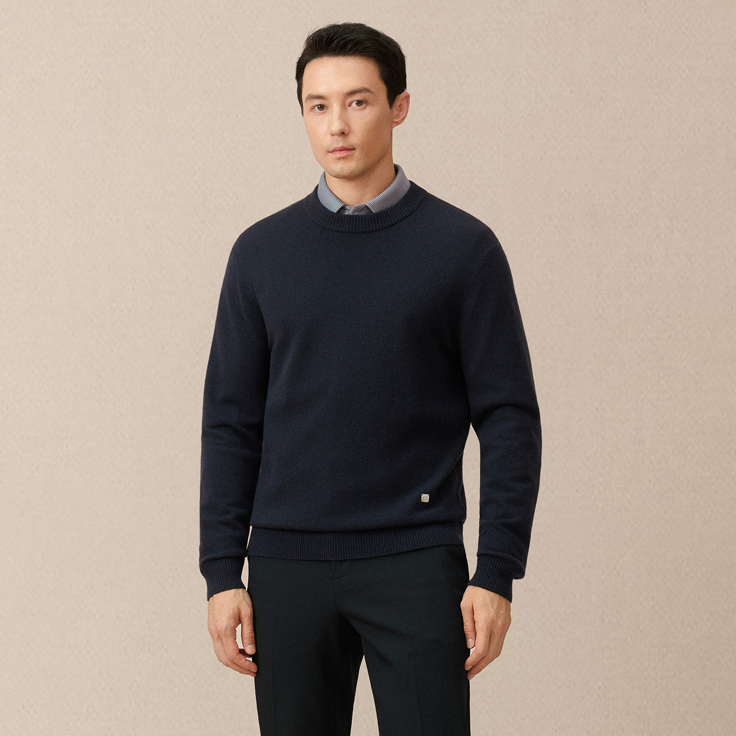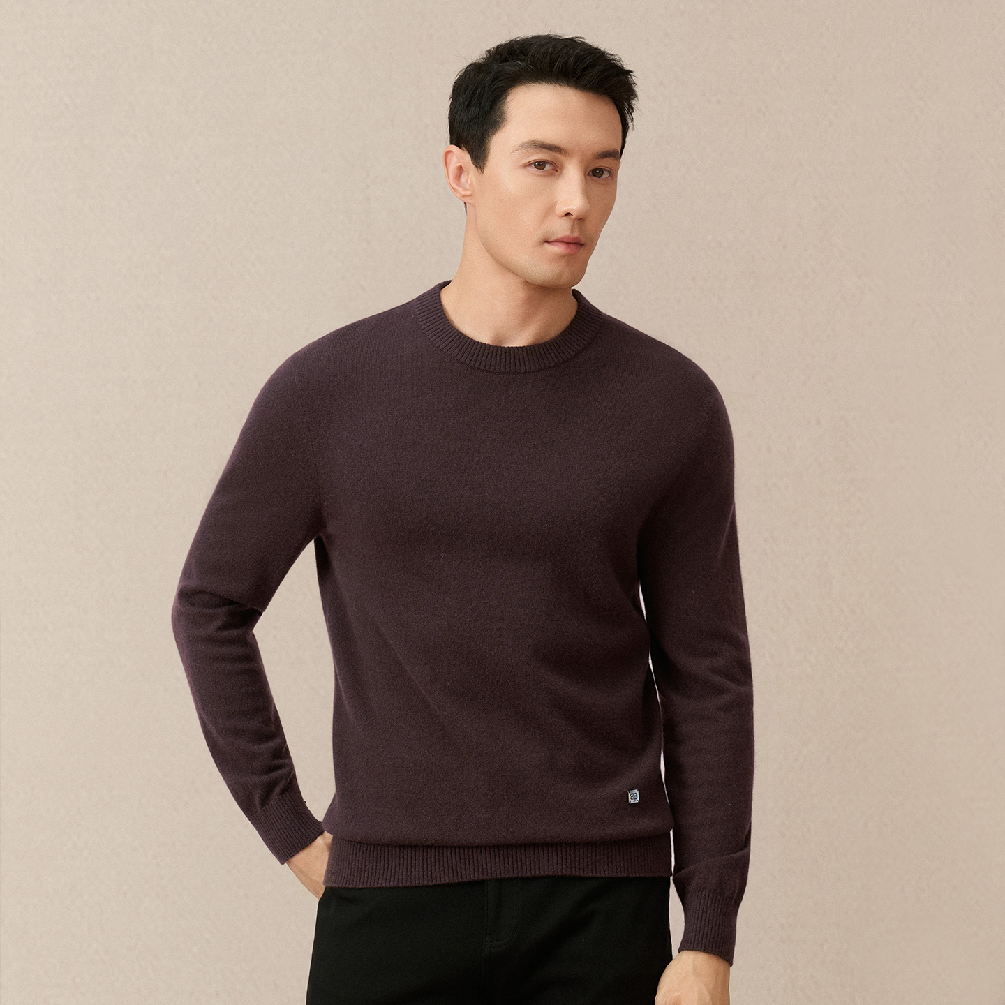 休闲百搭套头羊绒衫 商务圆领毛衣净色针织衫 男 堡尼秋冬新品 BONI