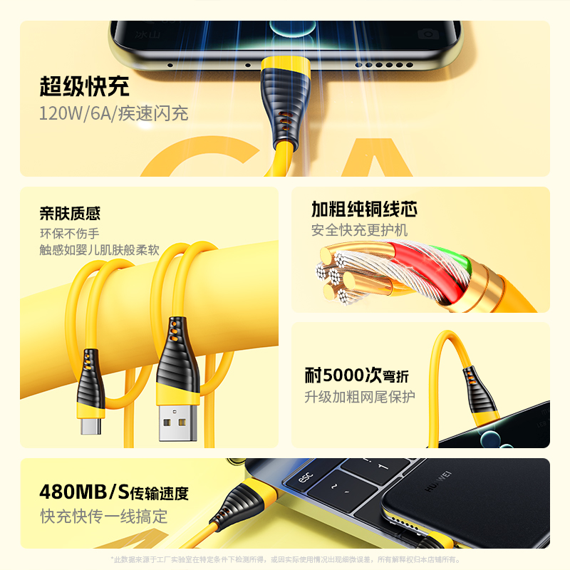森达升6A超级快充数据线type c闪充线适用于华为手机iQOO双引擎快充vivo荣耀oppo小米平板通用USB加粗加长