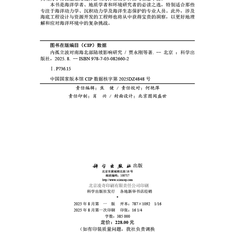 朱超祁 贾永刚 等 著 社9787030826602 现货速发 科学出版 内孤立波对南海北部陆坡影响研究