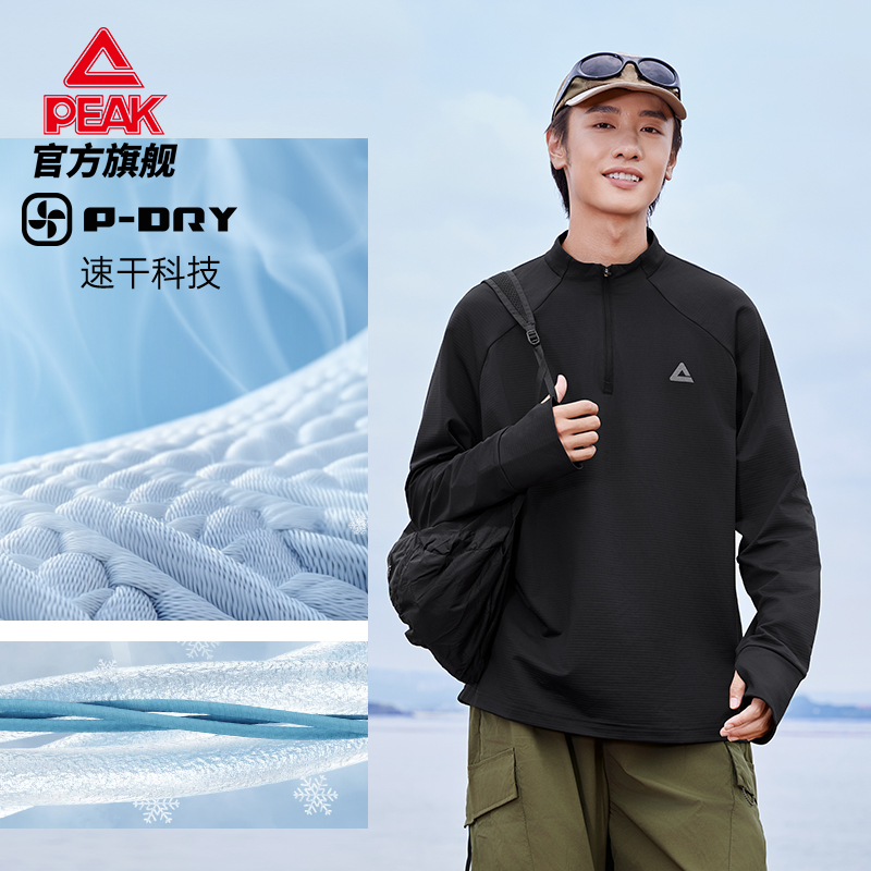 骆驼运动速干衣女2025秋季 T恤训练服跑步健身上衣男 薄绒立领长袖