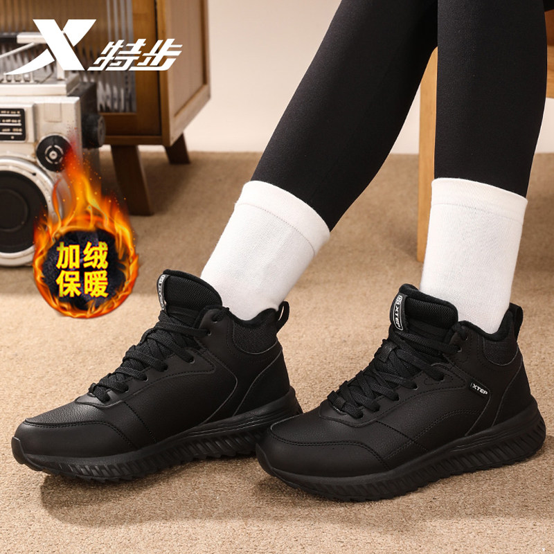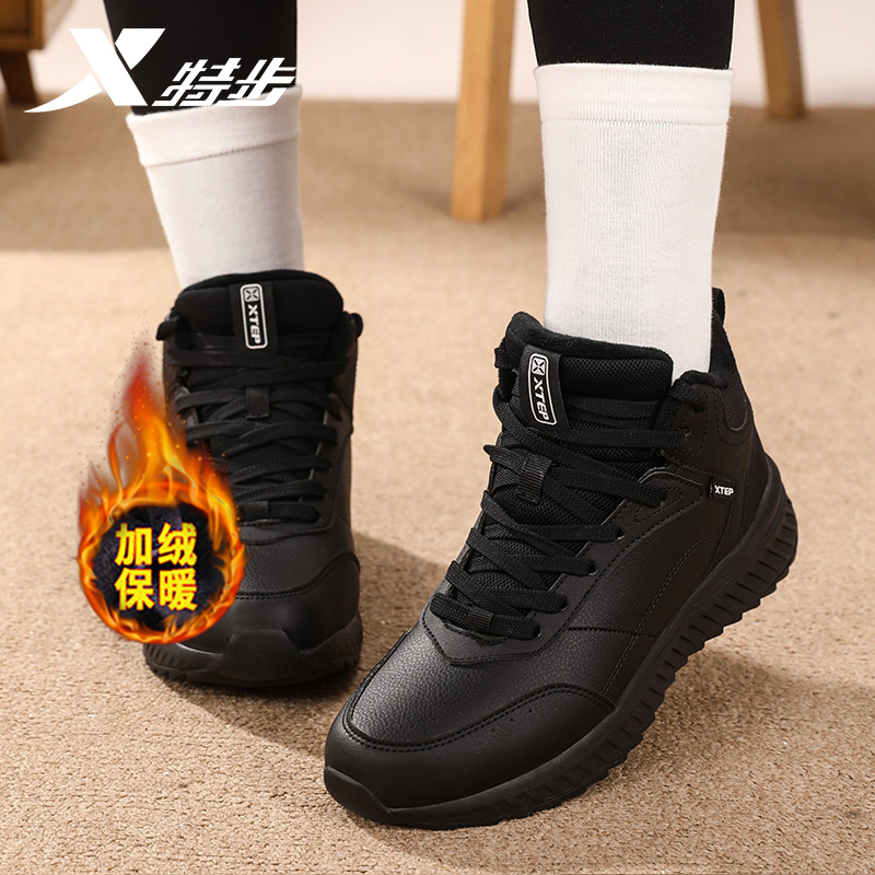 子皮面防水运动鞋 官方旗舰店加绒休闲跑步鞋 秋冬2025新款 特步男鞋