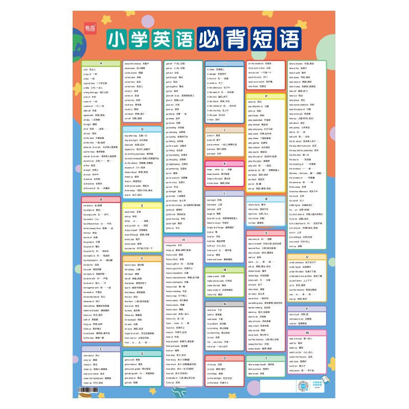 小学英语必背短语挂图常考短语知识点汇总固定搭配短语三四五六年级核心基础单字词组知识点常用短语音频有声跟读学习墙贴 易蓓