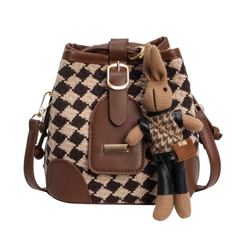 新品 潮流行高级感百搭通勤单肩斜 小众设计格子水桶包包女2025新款