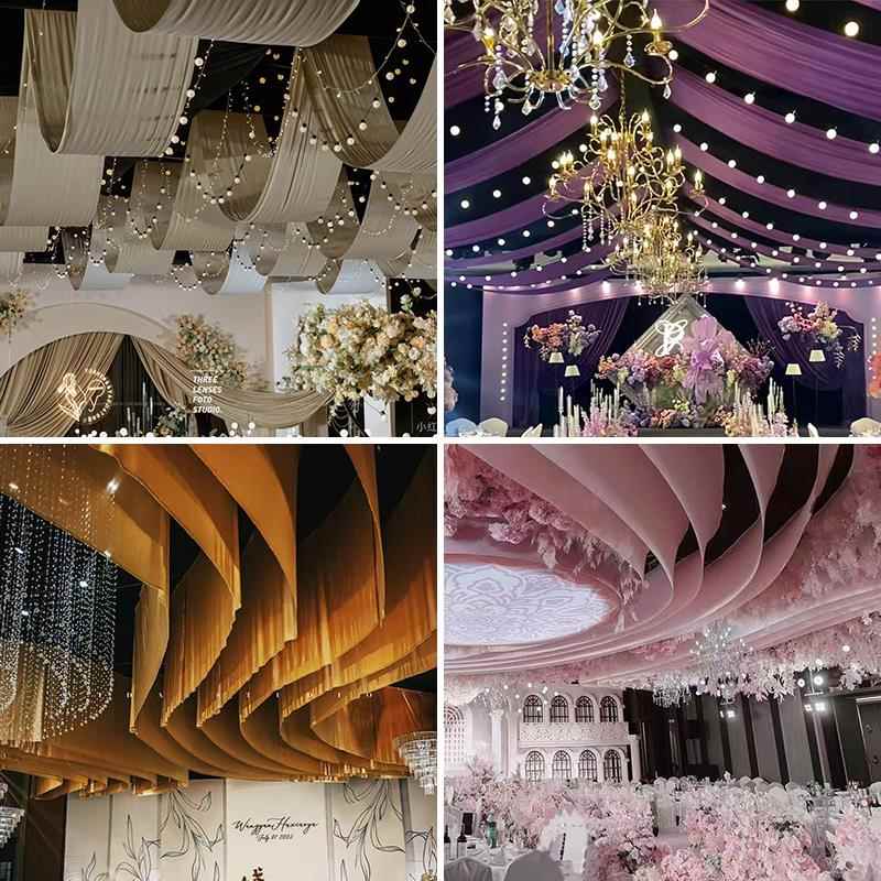 婚庆双面牛奶丝弹力布料婚礼堂舞台背景波浪吊顶装 饰纱幔布幔帷幔