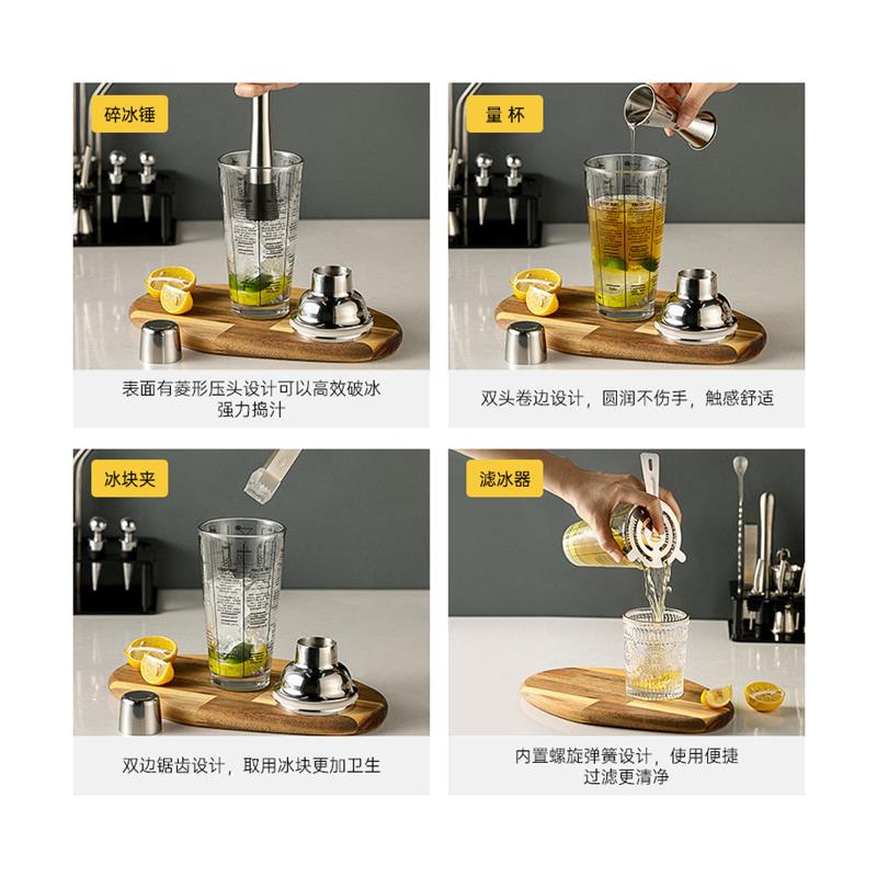 雪克杯不锈钢304调酒器玻璃手摇壶鸡尾酒吧调酒工具套装 入门摇杯