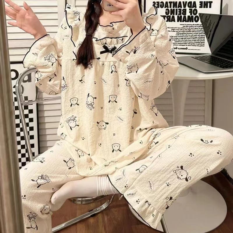 家居服套装 芬腾纯棉睡衣女长袖 甜美2025新款 女生秋季 可外穿 春秋款