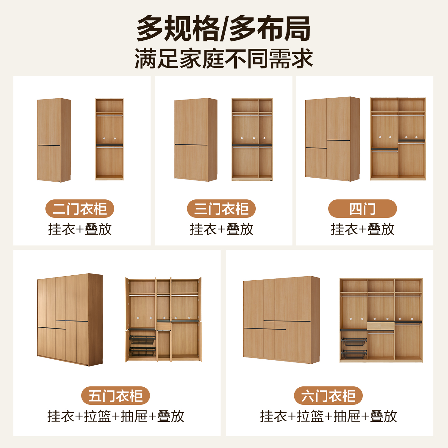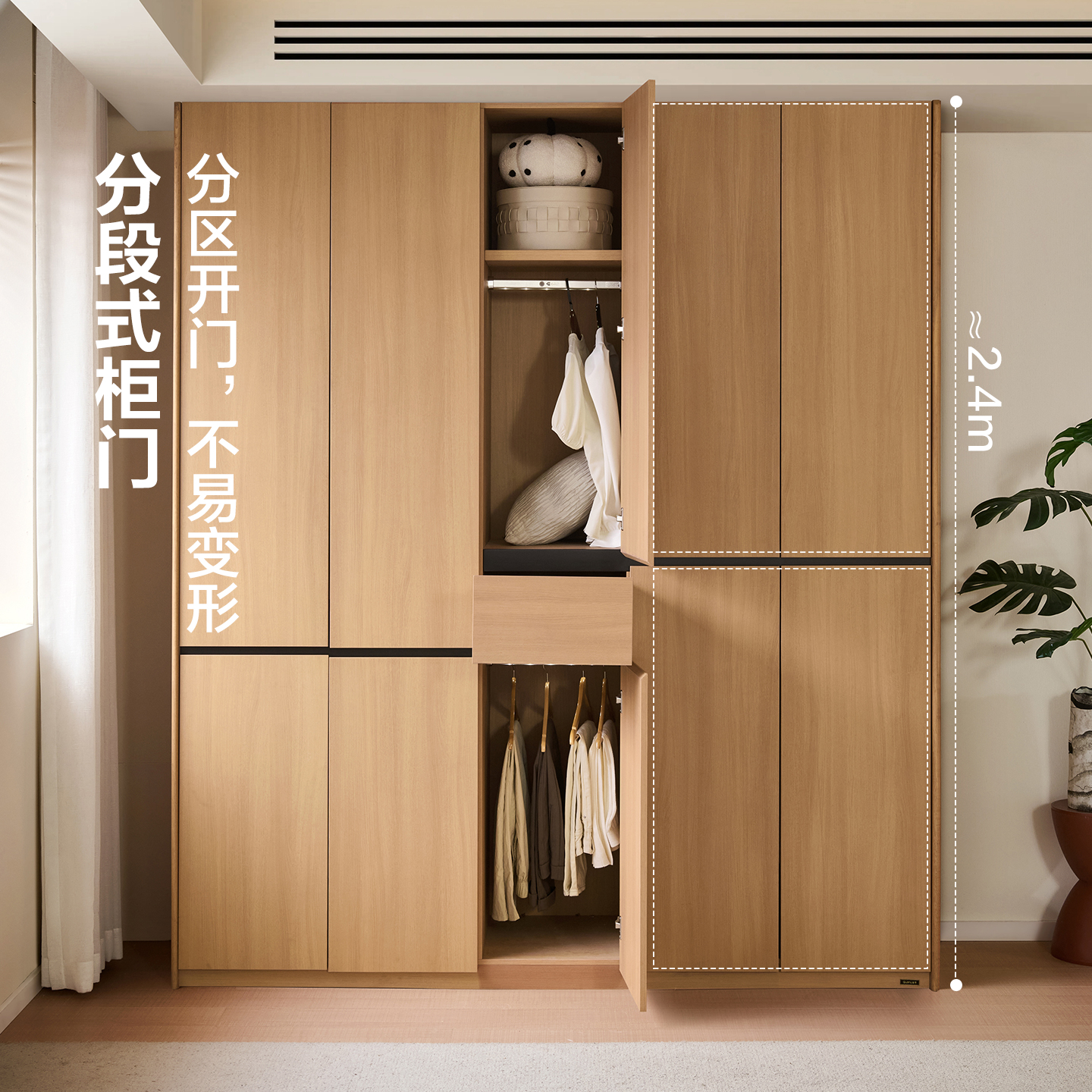全友家居原木风分段式 卧室家用小户型成品柜子 收纳衣柜2025新款