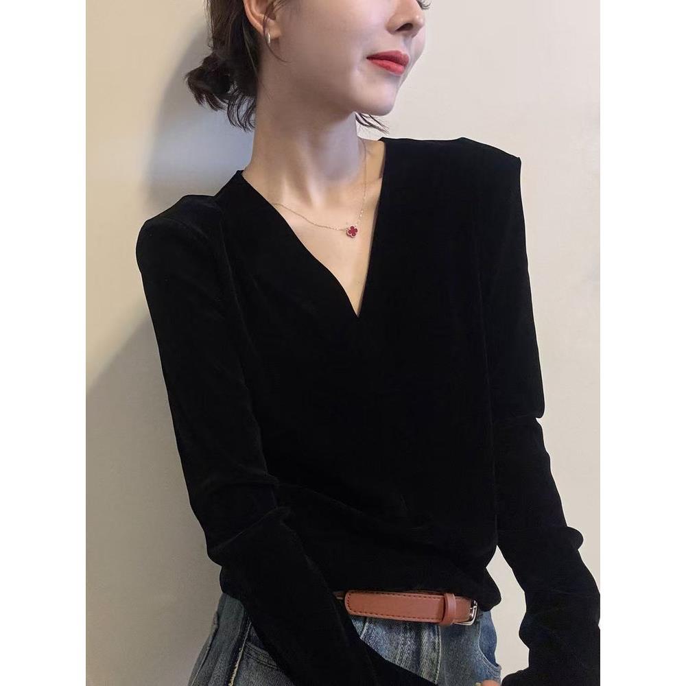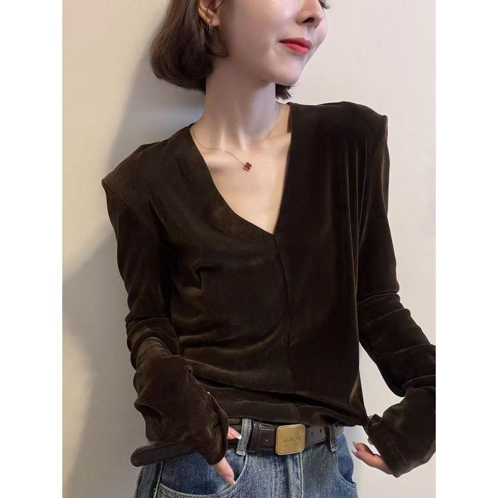 修身 打底衫 百搭上衣服 T恤女春秋内搭短款 设计感小众正肩纯棉长袖