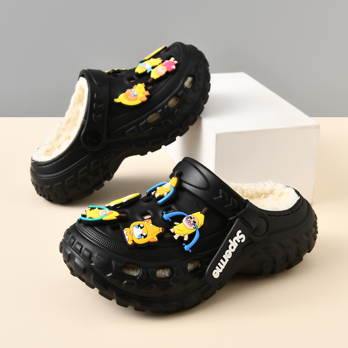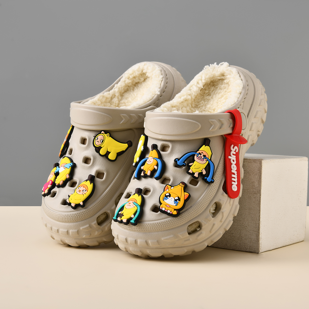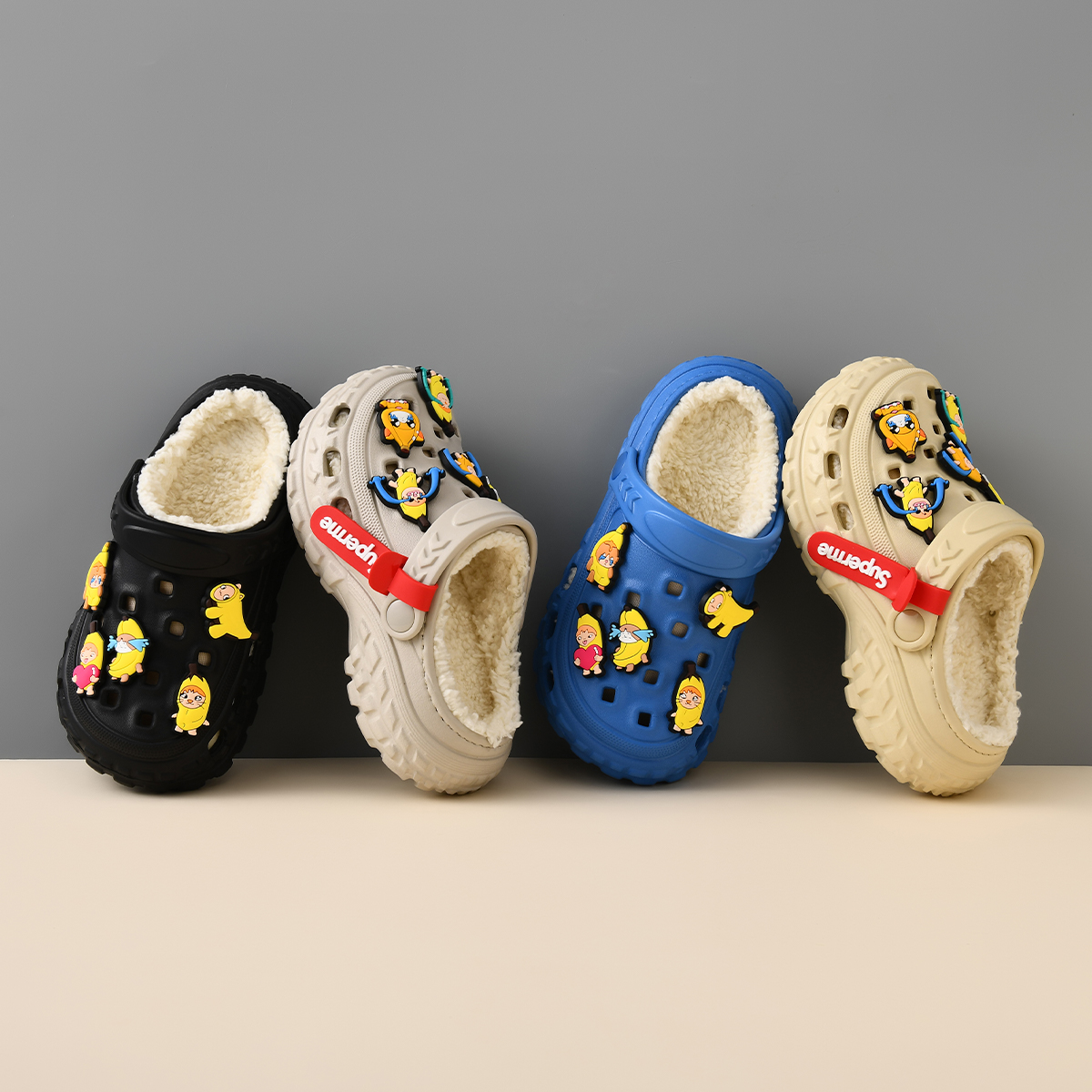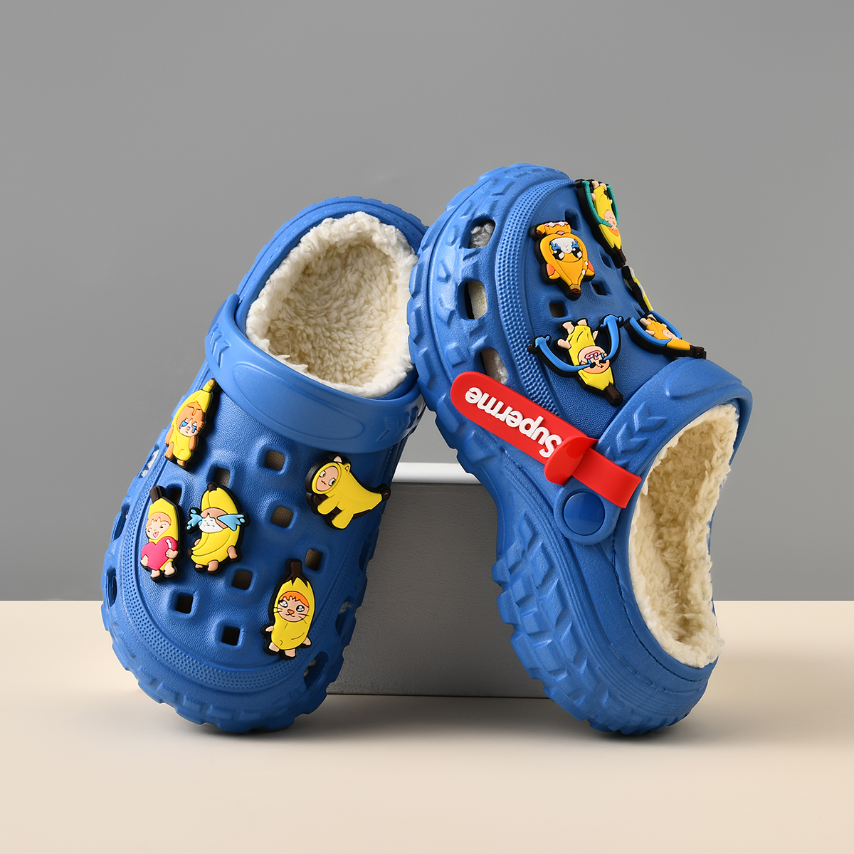 居家室内防滑软底可爱男孩宝宝儿童洞洞鞋 加绒男童棉拖鞋 新款 冬季