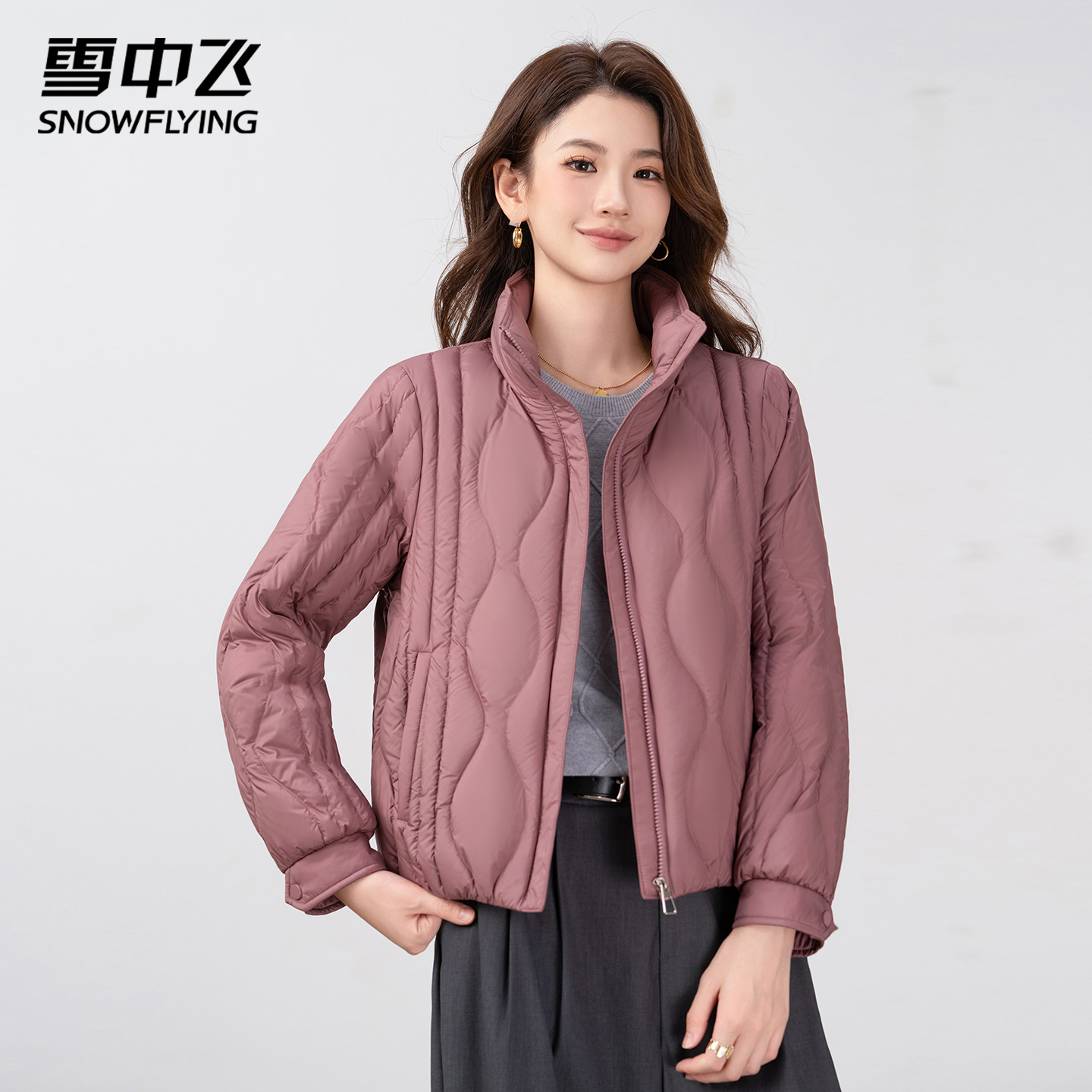 立领保暖外套 轻暖短款 雪中飞鹅绒轻薄羽绒服内胆女2025冬新款 时尚