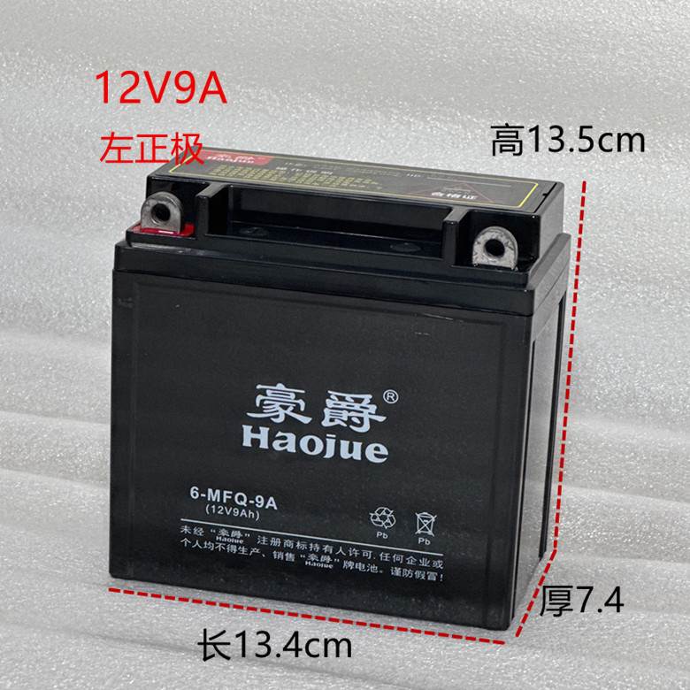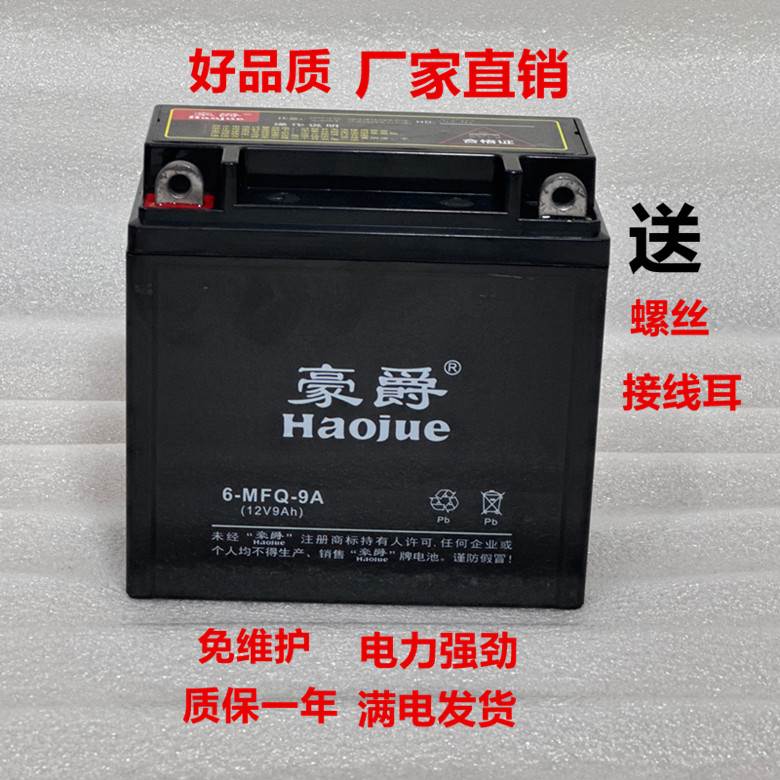 豪电瓶12v9a免维护干蓄电池125弯梁滑板车摩托通用干电池7ah