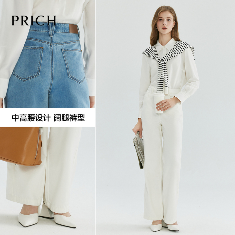 大直筒牛仔裤 加绒上新 2025秋冬新款 高腰阔腿牛仔裤 太平鸟广角裤