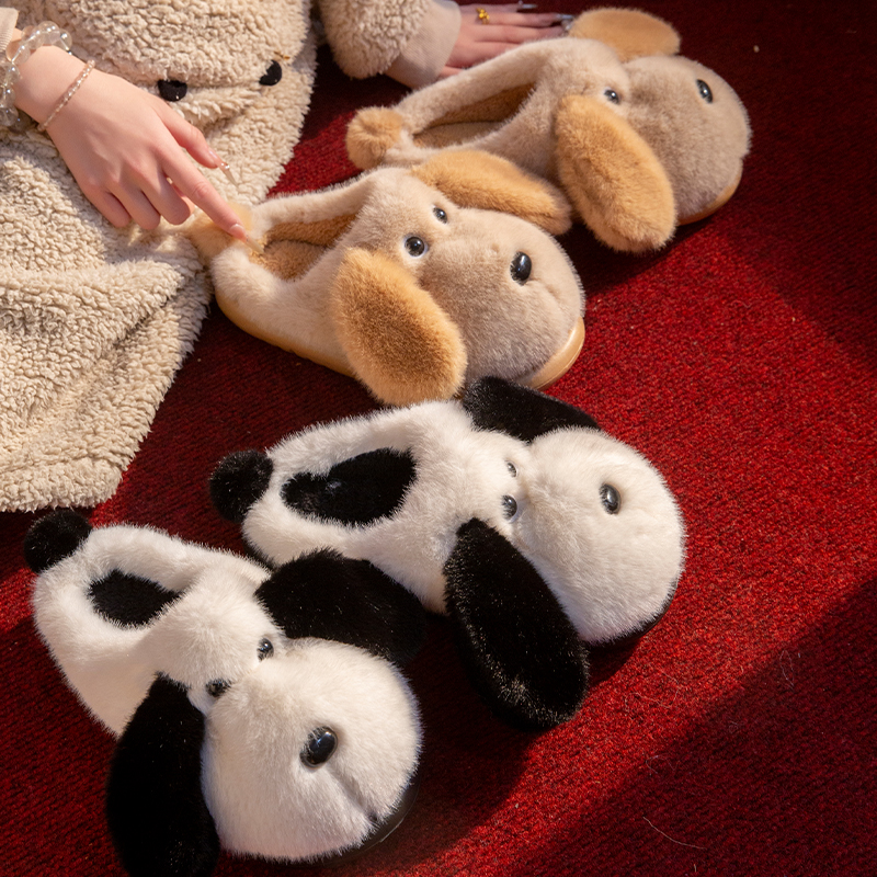 小狗情侣居家防滑保暖加绒月子鞋 秋冬季 男 女2025新款 棉拖鞋