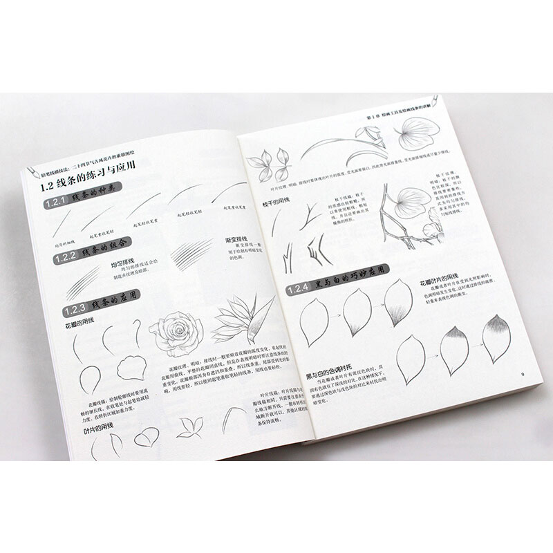 铅笔线描技法 素描图绘花卉绘画技法讲解传统节气主题花卉白描绘画技法讲解古风线描画技法素描书工笔画临摹 二十四节气古风花卉