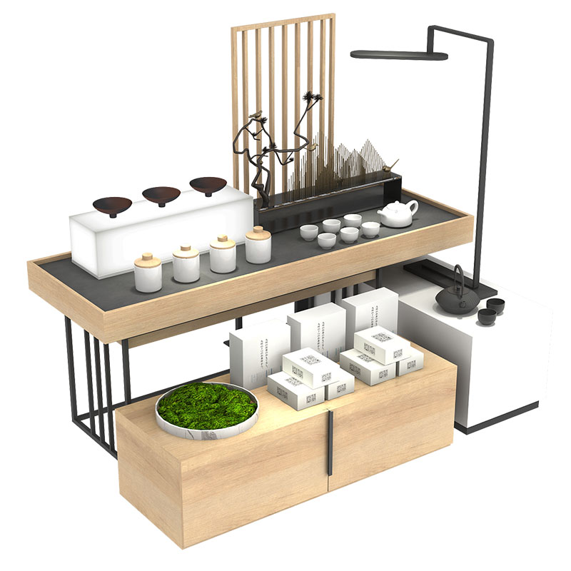 众匠坊茶叶中岛展示台陈列柜新中式 展示架高低流水台产品展示柜