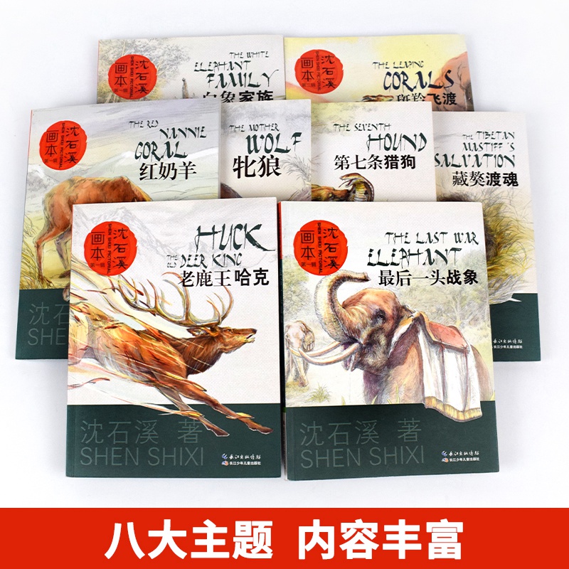 15岁三四五六年级 文学故事书小学生课外阅读书籍 全套8册沈石溪绘本一头战象斑羚飞渡白象家庭 沈石溪动物小说画本系列