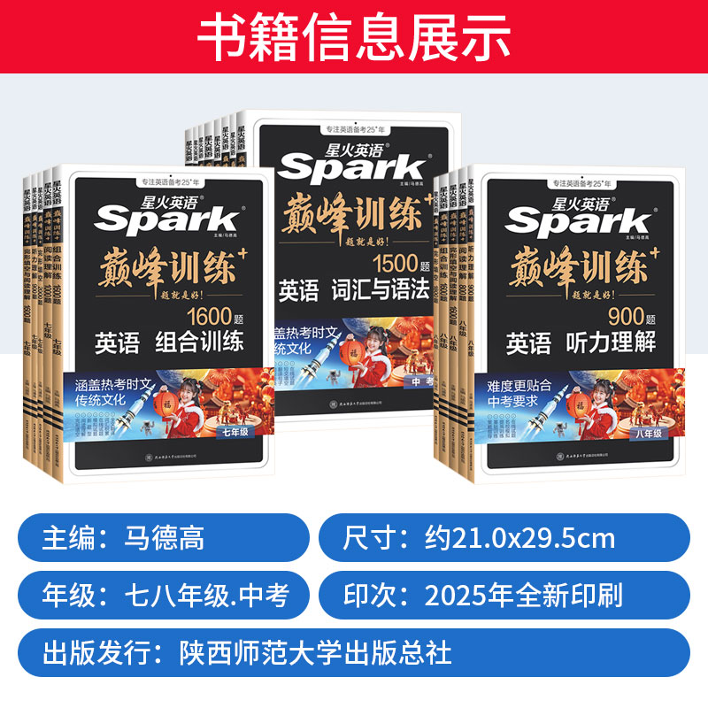 巅峰训练星火英语七八九年级中考英语完型填空与阅读理解专项训练初一二英语完形填空听力理解短文语法填空组合训练初中词汇与语法