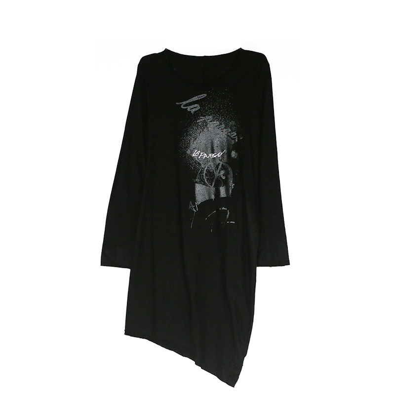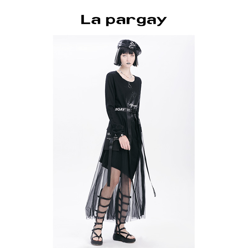 长袖 Lapargay纳帕佳新款 时尚 黑色裙子个性 圆领不规则连衣裙 女装