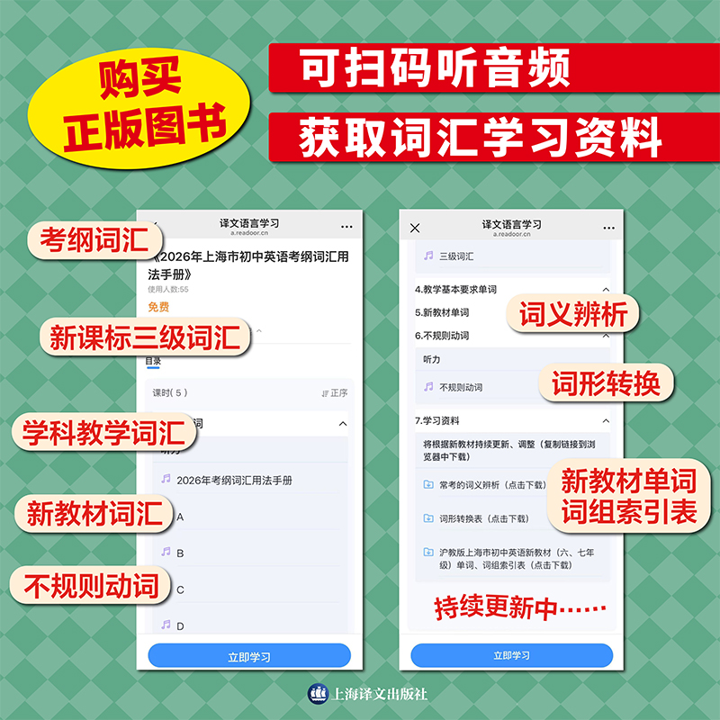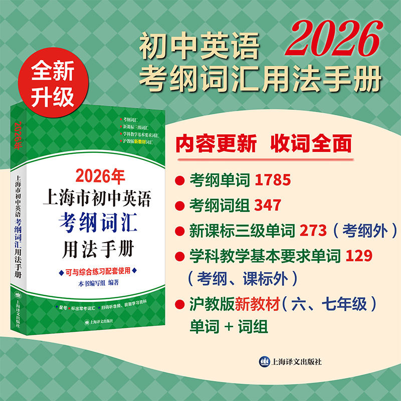 2026新版 上海市初中英语考纲词汇中考英语词汇用法手册便携本天天练配套综合练习考纲词汇手册中考英语单词3500词汇2025版