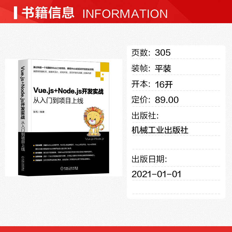 图书籍 社 张帆 新 专业科技 程序设计 从入门到项目上线 编 机械工业出版 Vue.js 新华书店正版 Node.js开发实战