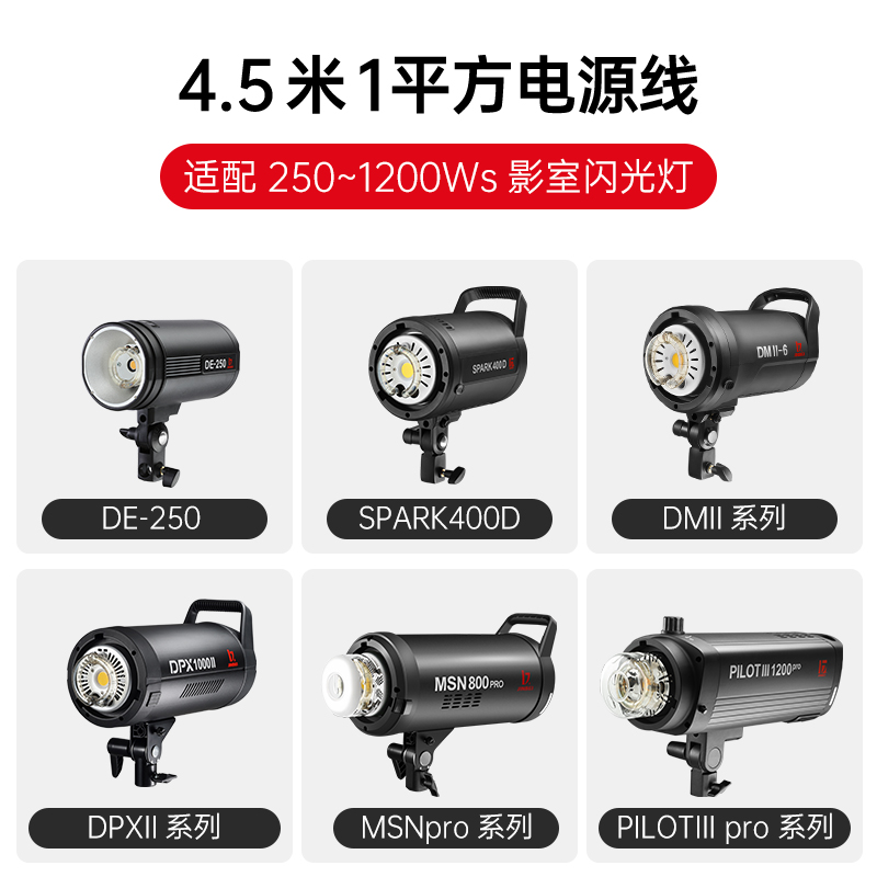 摄影器材摄影灯附件 金贝正品 3.5米 4.5M 闪光灯电源线 摄影灯电源线
