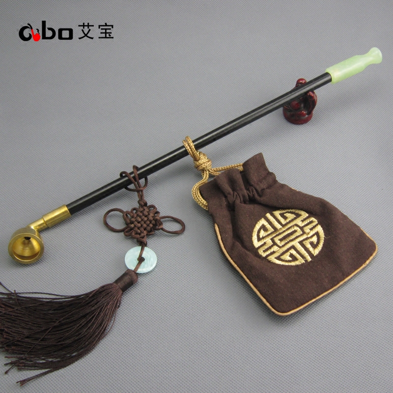 艾宝老式 复古烟斗丝草 黄铜大号旱烟袋锅子玉石烟嘴实木长烟杆男士