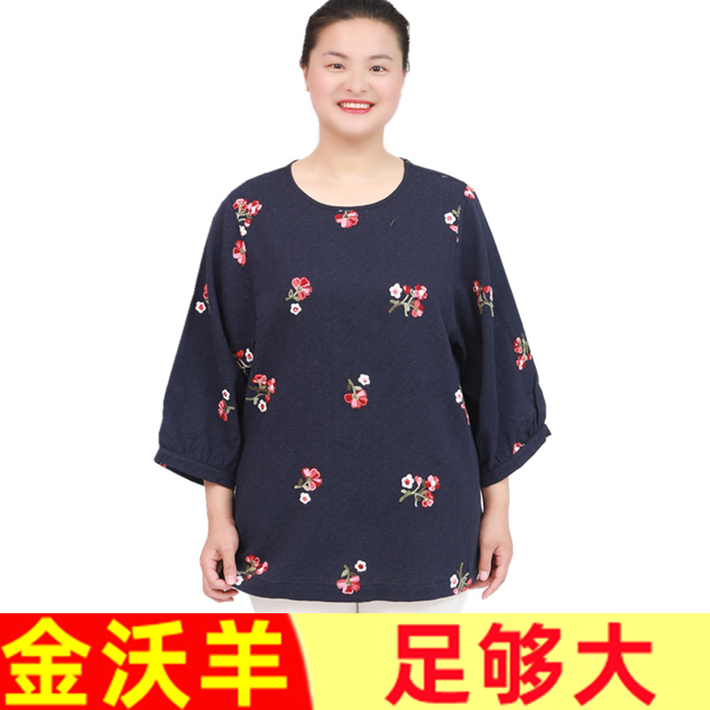 中袖 特超胖妈妈T恤宽松中老年春夏装 圆领mt1 女装 200斤加肥加大码