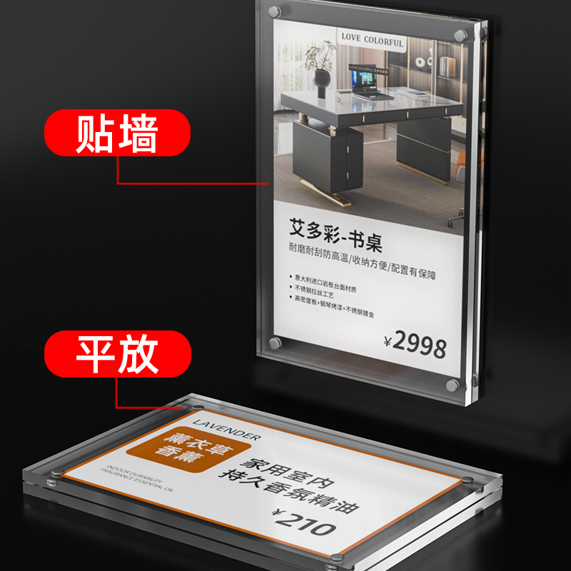 商品标价签平贴亚克力标签牌价格签展示架台签台卡牌定制 卫浴墙面标价牌标签架粘贴式 轻薄款 地板瓷砖价格牌