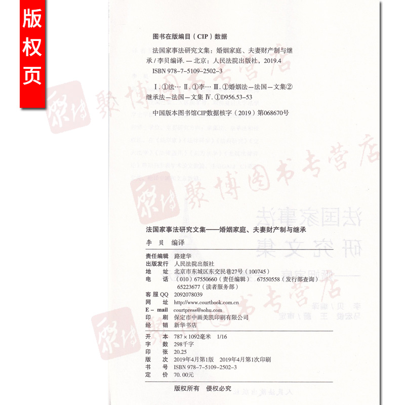 李贝 夫妻财产制与继承 编译 人民法院出版 9787510925023 法国家事法研究文集—— 社 婚姻家庭