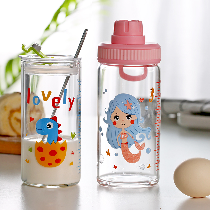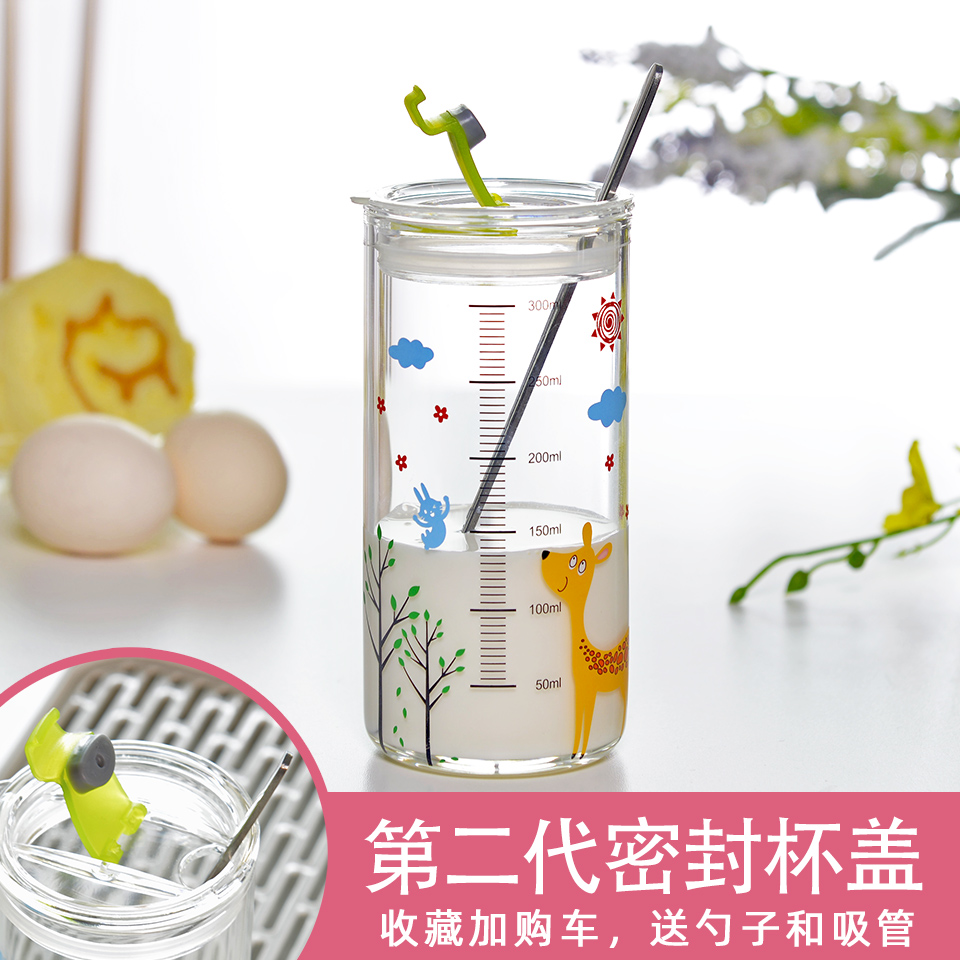 耐高温儿童牛奶杯带刻度玻璃量杯早餐喝奶杯吸管水杯微波炉可加热