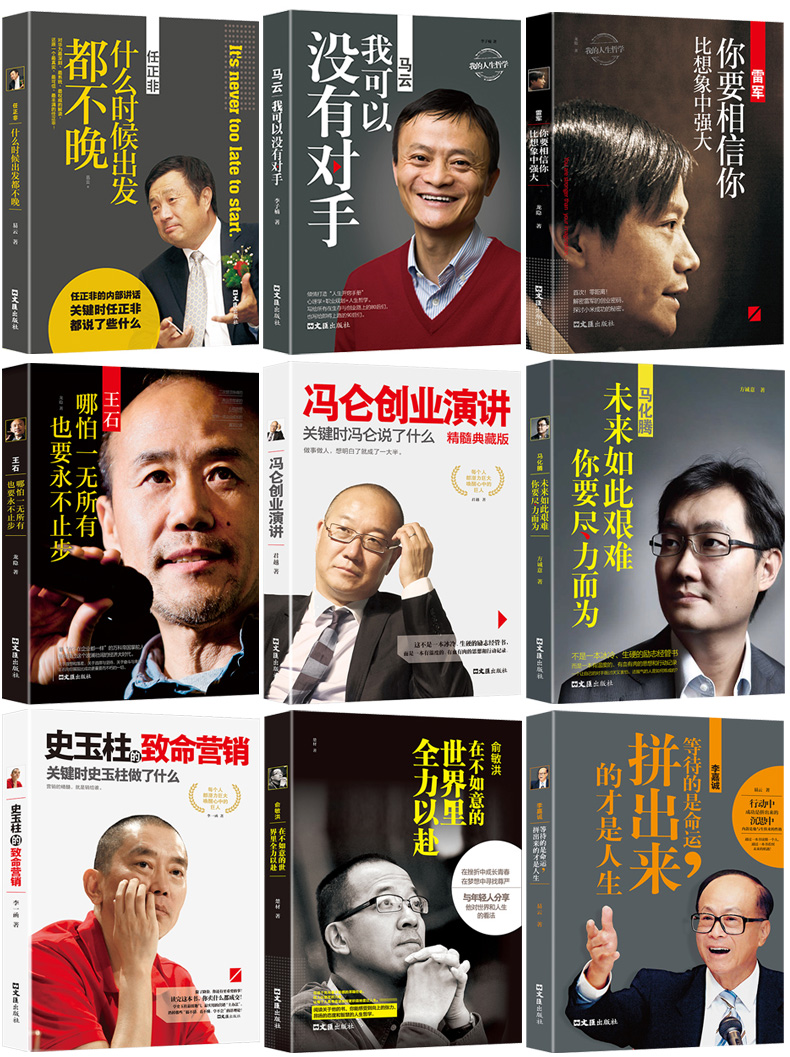 中国商界风云人物全9册 马云马化腾王石任正非传俞敏洪雷军李嘉诚史玉柱冯仑企业管理名人创业经验分享说话口才励志自传万事合书籍