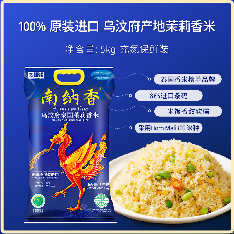 南纳香泰国乌汶府茉莉香米5kg长粒大米原装 进口10斤新米籼米送礼