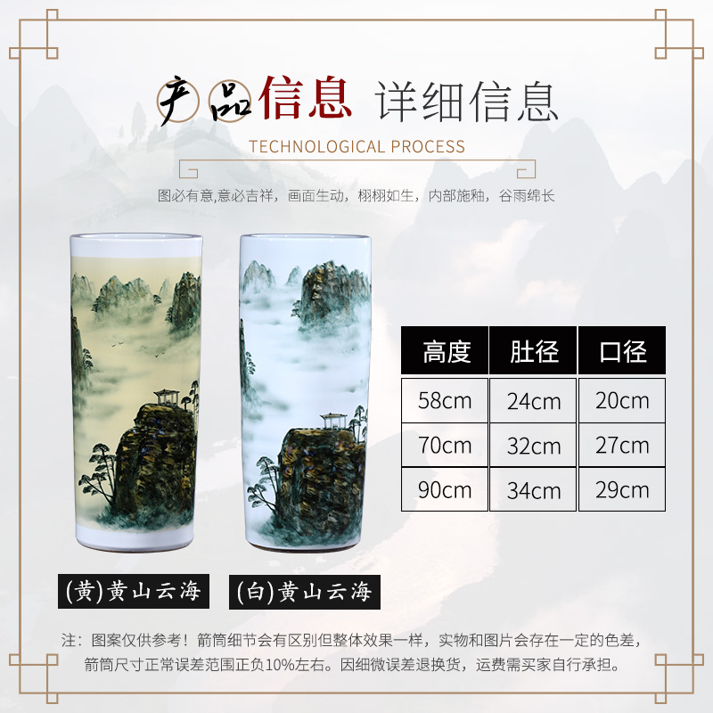景德镇陶瓷器书字画缸卷轴缸落地大花瓶收纳直筒客厅插花箭筒摆件