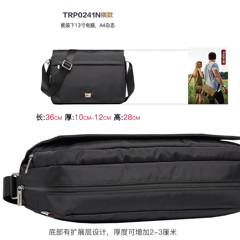 Troop男包单肩包男士 斜挎包男尼龙包大容量牛津布轻便背包横款
