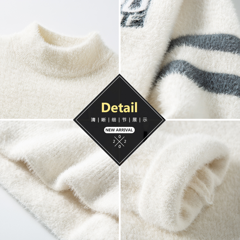 保暖针织衫 半高领毛衣男秋冬中领加绒加厚打底衫 毛线衣 可机洗