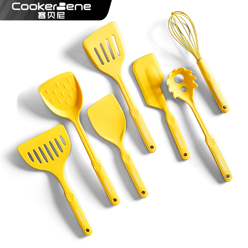 CookerBene不粘锅专用食品级硅胶锅铲家用油刷长小柄炒菜铲子汤勺