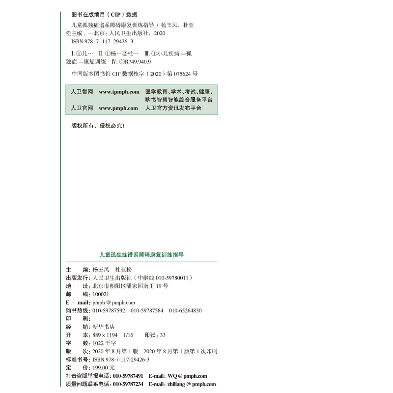 现货 社9787117294263 儿童孤独症谱系障碍康复训练指导杨玉凤杜亚松人民卫生出版