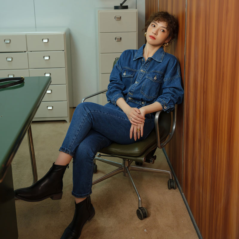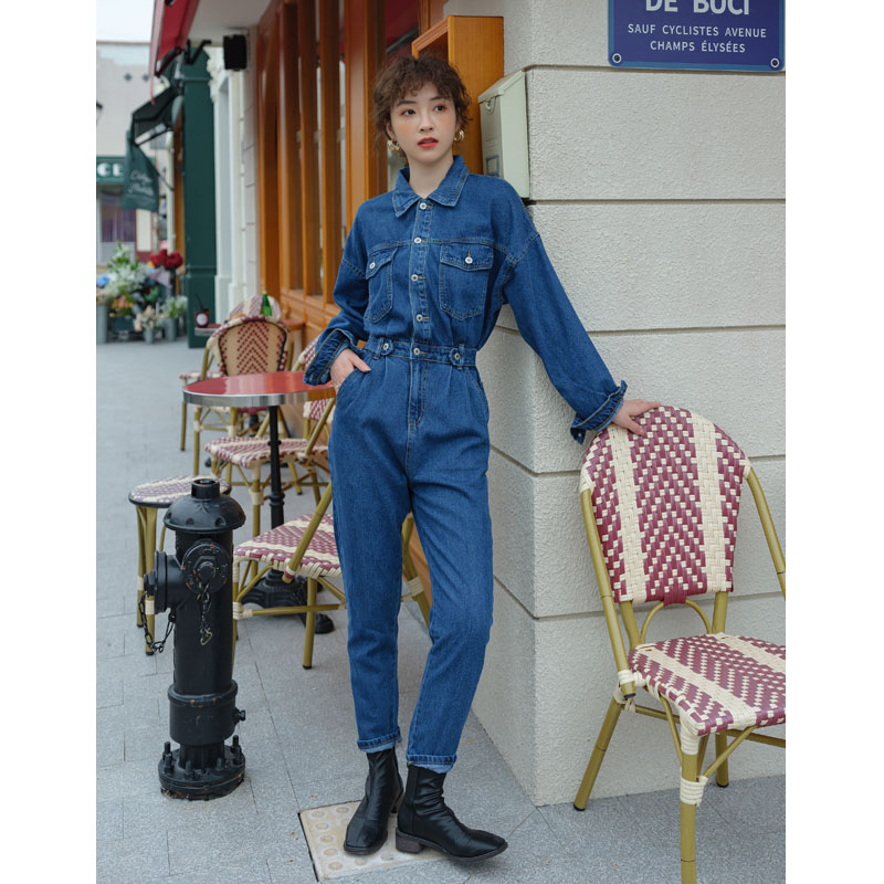 户外休闲时尚 港风显瘦连衣裤 牛仔连体裤 2023新款 潮 女秋季 复古工装