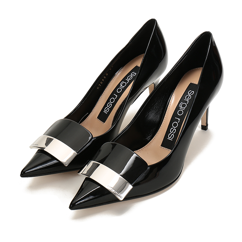 女 侧空红底裸色浅口气质单鞋 2025新款 细跟尖头漆皮名媛高跟鞋