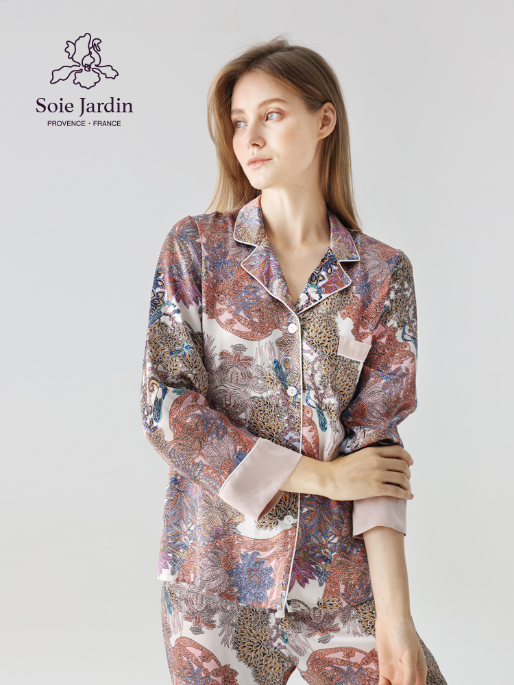 简约女士家居服套装 宽松新款 果壳冰丝睡衣女春秋款 Gukoo