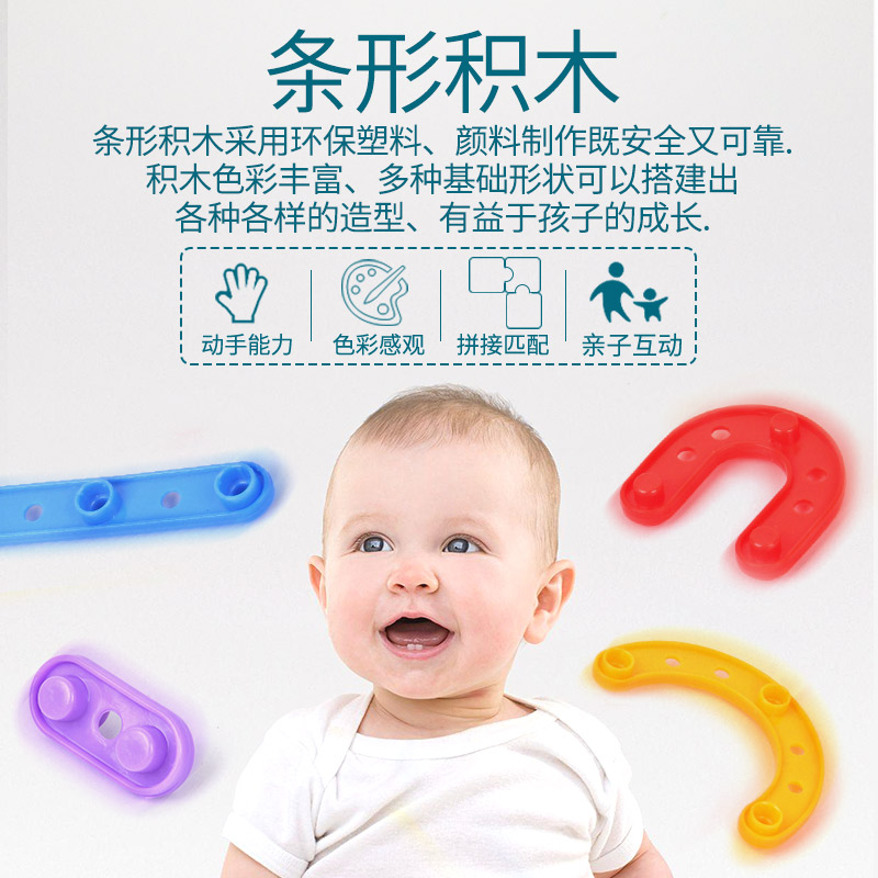 幼儿园儿童桌面游戏条形拼搭积木玩具3 4岁6宝宝益智早教小班拼插