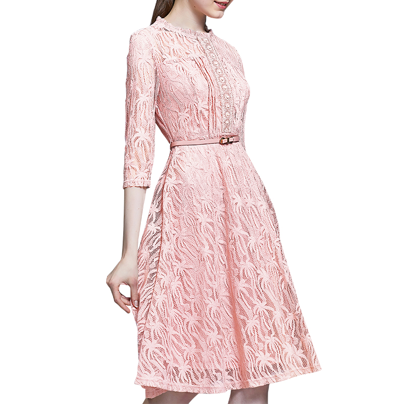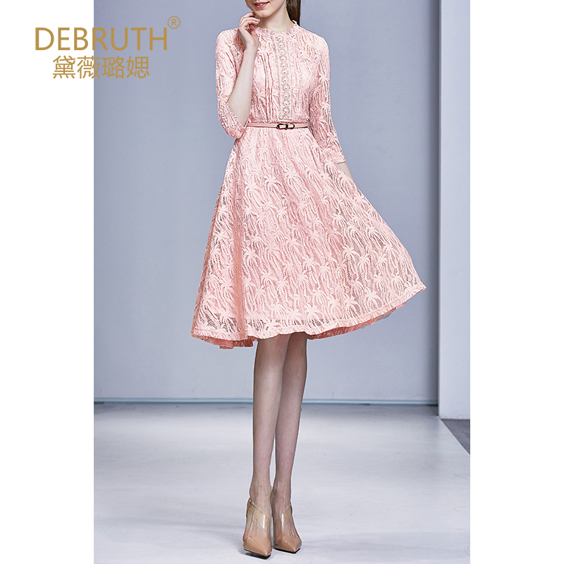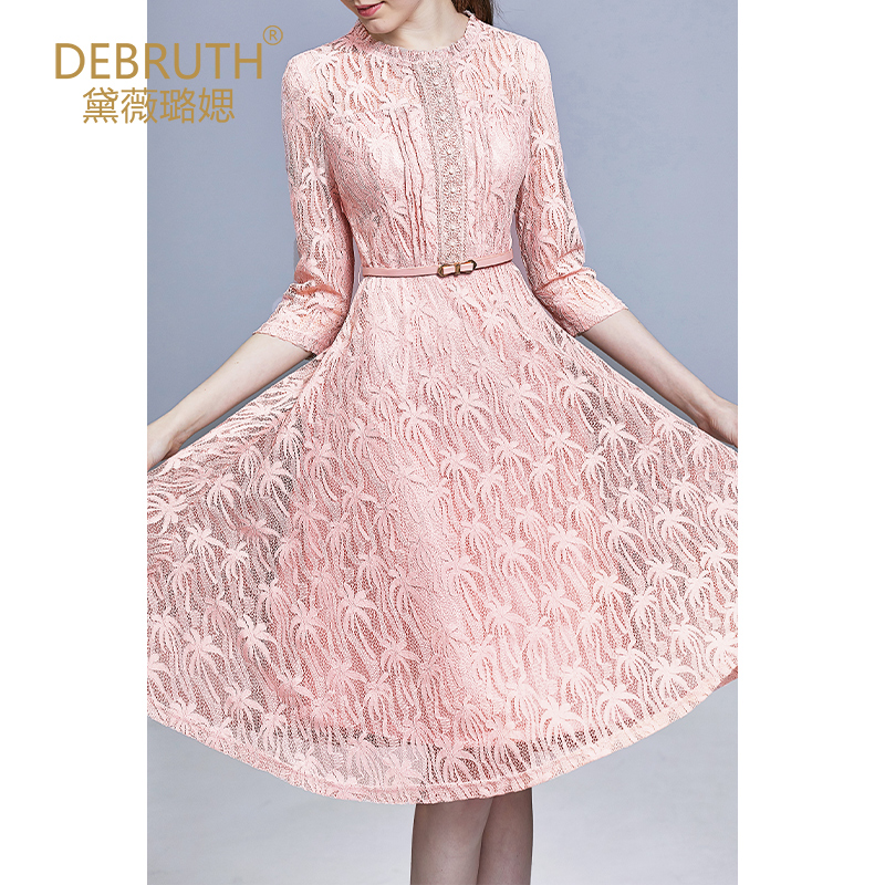 M2女装 中年妈妈弹力收腰显瘦H型系带提花连衣裙 2025春秋宽松大码