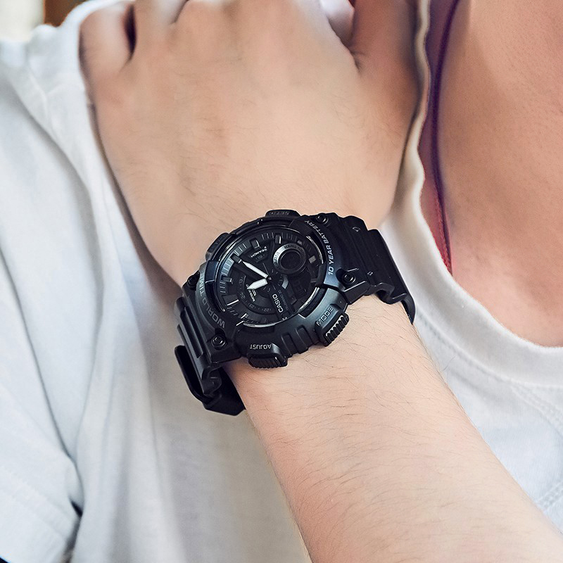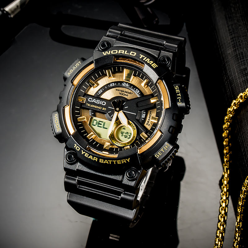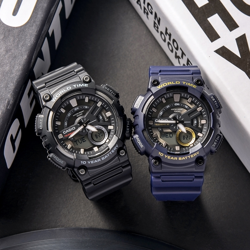 卡西欧手表男士 石英电子表礼物 运动黑金AEQ110黑武士防水学生正品