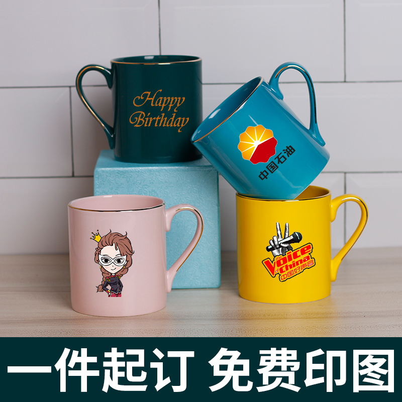 马克杯咖啡杯带盖带勺陶瓷杯子情侣水杯女办公室茶杯男生家用定制