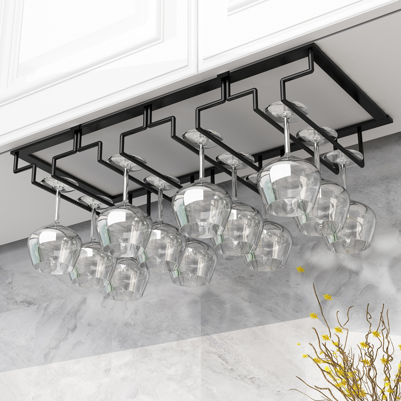 黑色免安装 酒杯架倒挂红酒杯架悬挂酒吧酒柜摆件酒架葡萄酒杯架