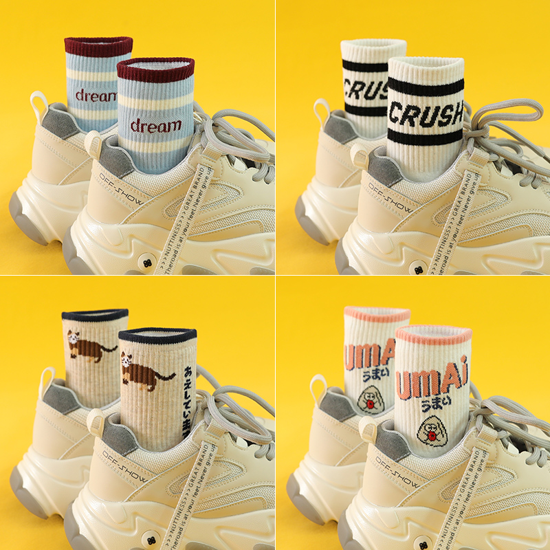 小腿袜子女春秋季 JK潮 过膝袜纯棉中筒袜微压显瘦无骨长筒长袜夏季