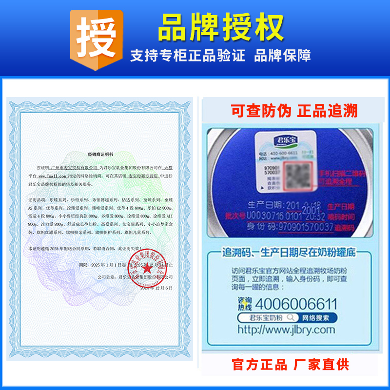 买1送1 旗舰官网 君乐宝至臻3段牛奶粉幼儿配方三段800g罐装